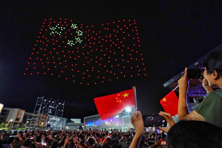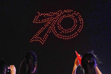 迎国庆70周年,南京上演300架无人机灯光秀表演!