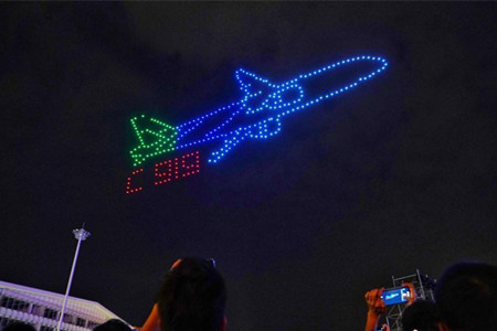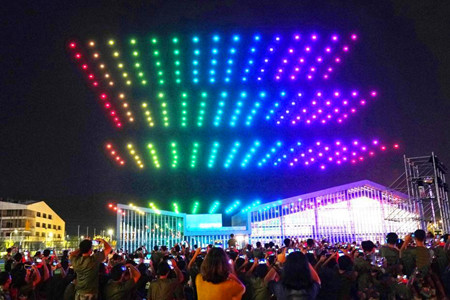 9月17日晚,一场无人机灯光秀表演在南京航空航天大学天目湖校区“筑梦云天”迎新晚会上亮相,300架无人机伴随着灯光和音乐缓缓升空,组成爱我中华、天安门、大飞机等图案,迎接国庆节的到来。
